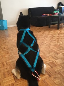 L’une des premières choses que vous pouvez faire, c’est habituer le chiot à son harnais de course. Le harnais de course a une forme différente des harnais de marche. J’ai moi même été habituée au harnais de marche dès que je suis arrivée dans ma nouvelle maison en Juillet 2017, donc j’ai tout à fait l’habitude de porteurs harnais.