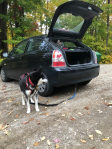 Je la laisse boire comme elle a besoin et ensuite je lui enlève son harnais et la remonte dans la voiture. En général elle dort ou se repose sur le trajet du retour.