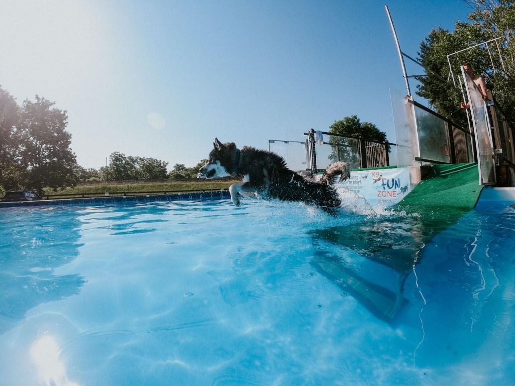 Then we tried booking the pool for a dock diving session. The very first session was all about fun and making sure Bolt is confident with the pool. Don’t expect your dog to jump off the dock the very first time, you’ll be disappointed and set your dog up for failure with expectations too high. His first session, he was going down the ramp walking and then just transitioning into a swim to get his ball. Eventually he started jumping off the ramp and we were already so proud.